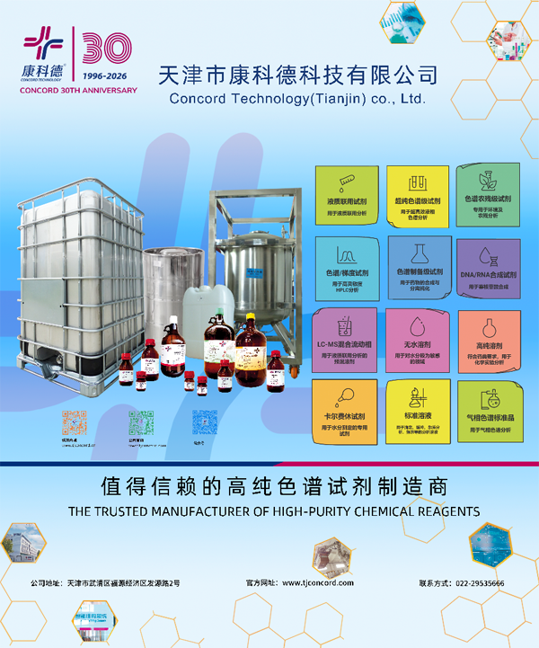 康科德公司创立于1996年,始终坚持科技创新,坚持不断发展,专注研制、开发、生产高纯化学试剂,推动行业高质量发展。凭借前沿的技术实力与高标准的质量管理体系,产品在高纯度、均一化、稳定性等关键指标上不断突破,技术指标达到国际一流水平。满足进口替代,已出口29个国家和地区。作为化学试剂行业的领先企业,康科德致力于为用户提供优质的产品与应用解决方案,助力科研、检测、制药、石化等领域高质量发展。